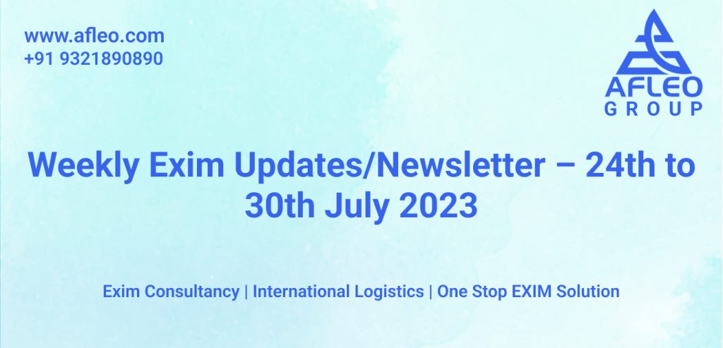 Export Import [EXIM] Business Weekly Updates – General News | New Notifications | 24 to 30 July 2023