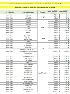 You can see in the image the export freight rates for selected trade routes, which are indicative in nature.