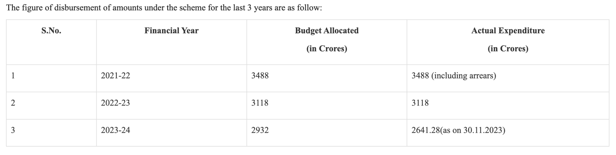 The IES scheme is mainly for labor-intensive sectors. It was launched on April 1, 2015, for five years, but it is still in existence, and the Government has recently extended it until June 30, 2024.The Government allocates an annual budget of approximately Rs.3500 Crores for this scheme. In the image, you can see the Government’s spending for the last three years.