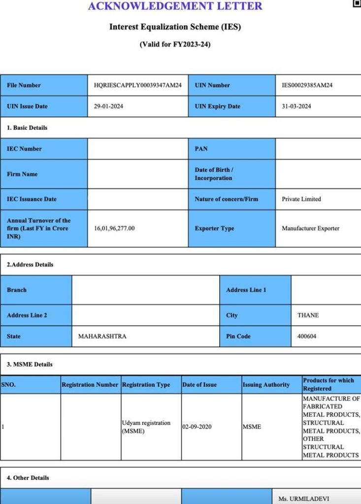 It is important to note that to avail the benefit of the IES Scheme, you need to provide the bank with a UIN Number (i.e., Unique IES Identification Number). You get this UIN Number from the DGFT (Directorate General of Foreign Trade).