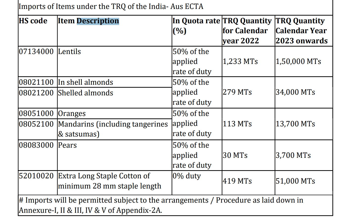 It is important to note here that the India-Australia TRQs are calendar year wise i.e. from 1st January to 31st December and not financial year-wise.