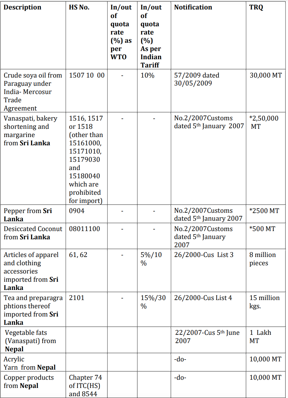 Tariff Rate Quota (TRQ) Scheme for Imports – Introduction